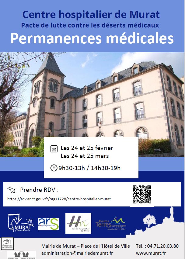 Pour prendre RDV : https://rdv.anct.gouv.fr/org/1728/centre-hospitalier-murat