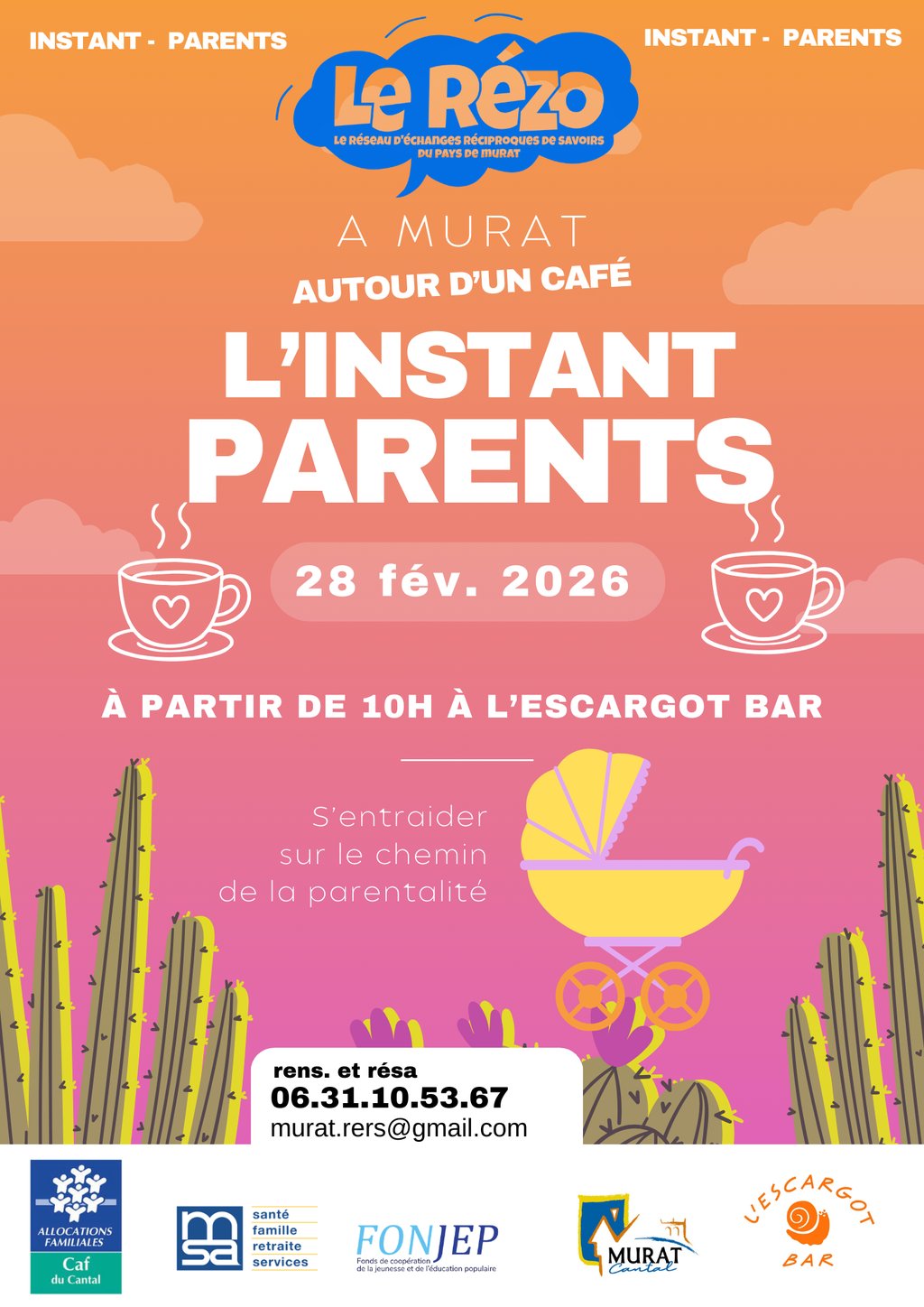 “ Le Café de L'instant Parents du Rézo de Murat est un rendez‑vous convivial ouvert à tous les parents et futurs parents du territoire. C’est un espace simple et chaleureux pour écouter, échanger, partager des expériences et trouver du soutien dans la parentalité.