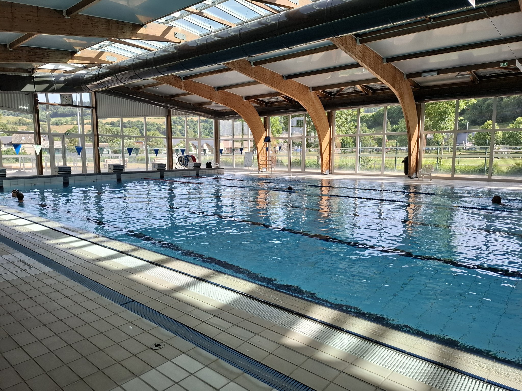 La piscine couverte et chauffée comprend un bassin de 25 m de long sur 10 m de large et une pataugeoire.